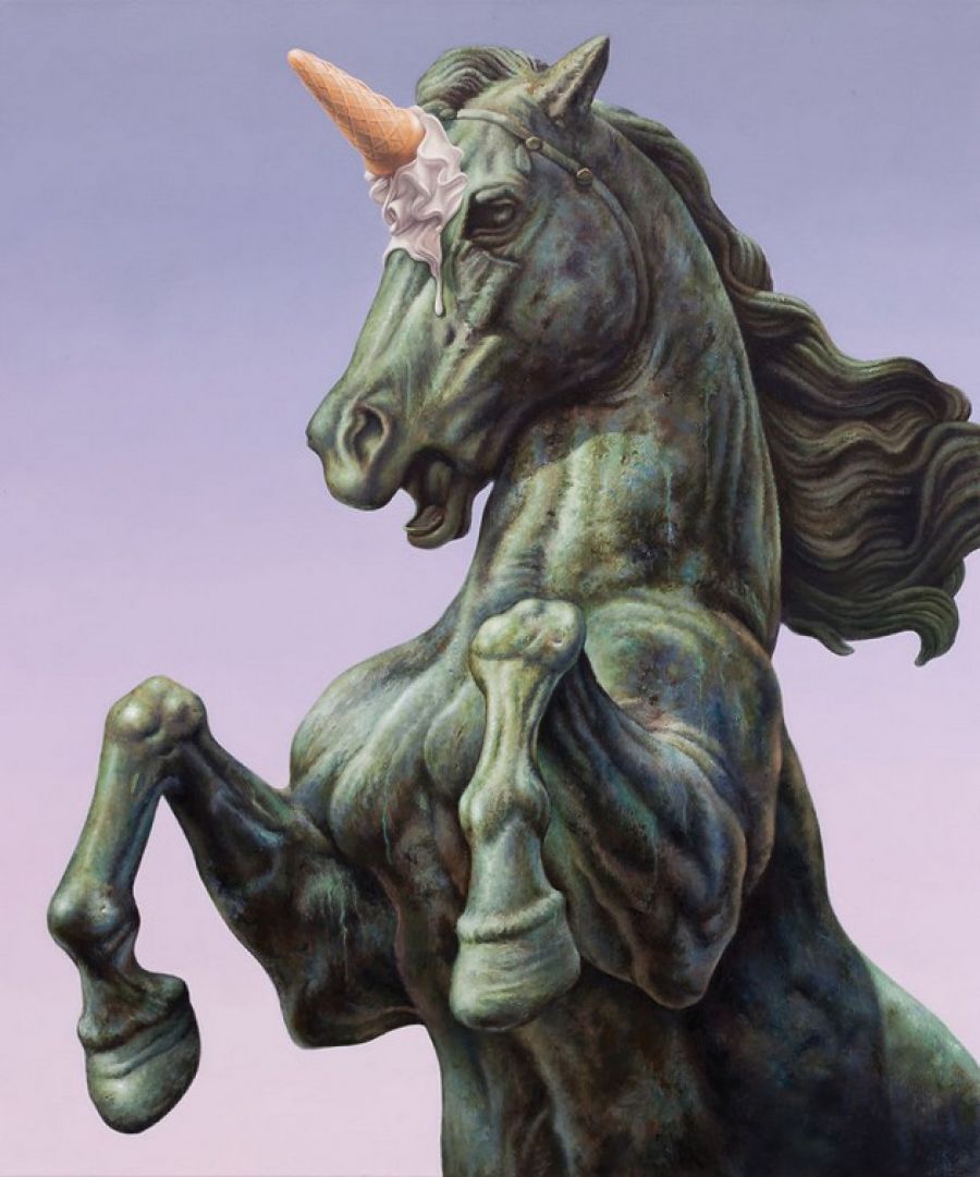V jeho prípade však ide o veselé paródie, či skôr o vhodné “doplnenie” sôch na obrázkoch. Na jednom z nich sa napríklad kôň stáva jednorožcom vďaka zmrzlinovému kornútku, na ďalšom zas Poseidon dostáva drobnú výpomoc na to, aby dokázal byť ochrancom všetkých vôd.