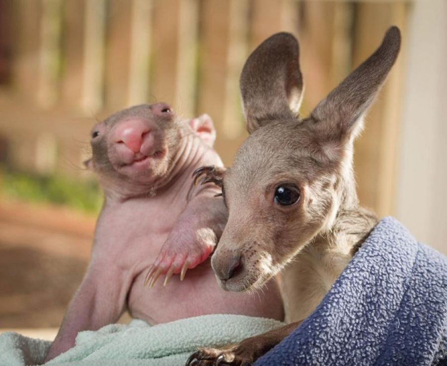Títo dvaja roztomilí kamaráti kengura Anzac a vombat Peggy sa ocitli v centre záchrany v Austrálii. Obidvaja sú, bohužiaľ, sirôtky. Našťastie majú v centre jeden druhého.