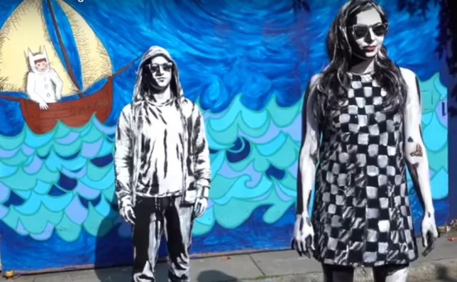 Vo videu, ktoré sme našli, sa z muža a ženy stávajú postavičky obkreslené čiernou a bielou farbou, aby vyzerali ako zo steny. Špeciálne tieňovanie a hodiny piplavej práce spôsobujú, že kedykoľvej sa dvojica postaví k stene, vyzerá to, akoby na ňu bola namaľovaná.