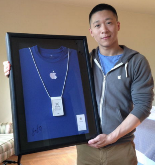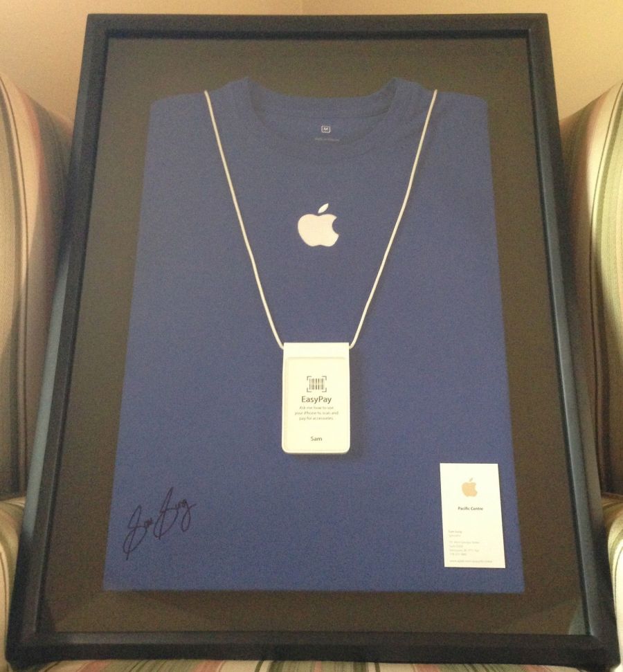 Sam Sung je totiž bývalý zamestnanec spoločnosti Apple. Ten sa po ukončení pracovného pomeru rozhodol, že využije patentové spory Samsungu a Apple. Svoju menovku z pobočky vo Vancouveri sa rozhodol predať na aukčnom portály eBay. Pôvodne sa jej chcel proste len zbaviť, a tak určil cenu na 99 centov. Keď sa však cena v aukcii vyšplhala na 3 200 dolárov, rozhodol sa, že výťažok z aukcie venuje charite.