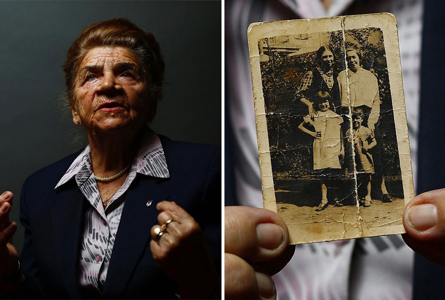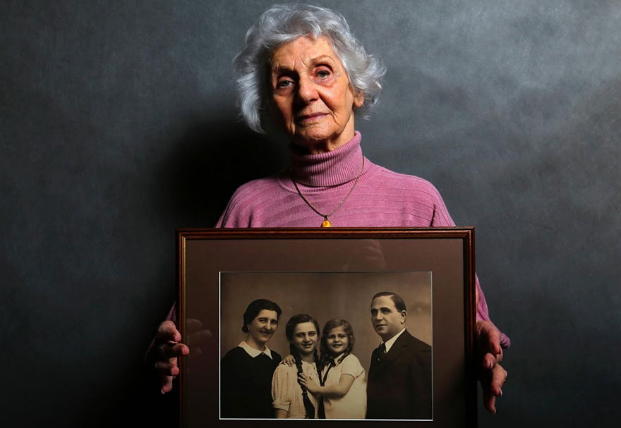 Eva Fahidi, 90, drží fotografiu rodiny. Celá jej rodina bola zavraždená v koncentračnom tábore.