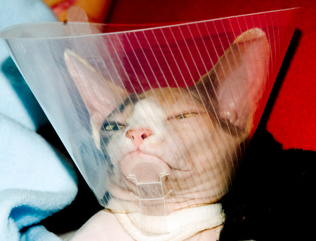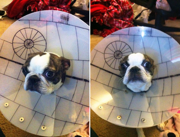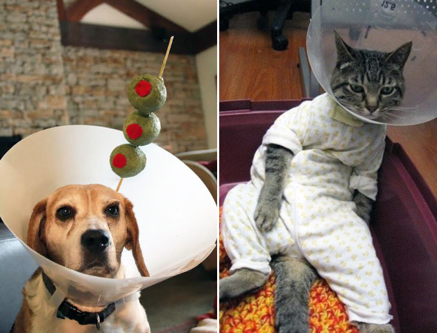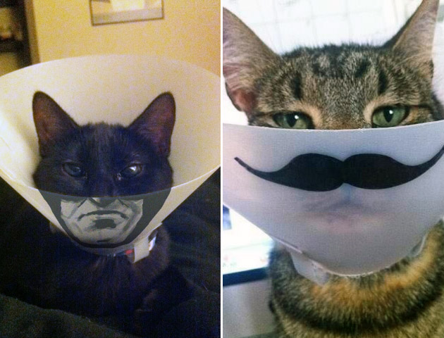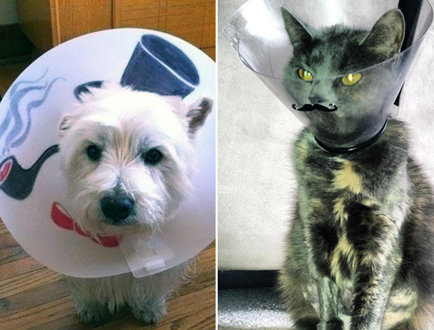 Nosiť ochranný golier asi nerobí žiadnemu zvieratku radosť. Lekárska pomôcka však v ľuďoch nemusí vždy vzbudzovať len ľútosť. Autorom týchto fotiek zrejme nechýba poriadny zmysel pre humor a so svojimi úlovkami na úkor chlpáčov sa radi pochválili.