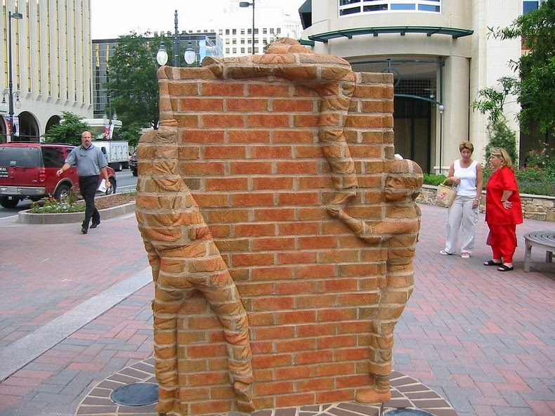 A ako sa vlastne vytvorí takáto socha? Najprv si Brad vytvaruje z hliny sochu a naznačí si miesta, kde pôjdu rezy. Tak sochu rozkrája a jednotlivé časti dá vypáliť. No a nakoniec musí tehly poskladať ako puzzle na mieste určenia. Často do práce zapojí aj zvedavých okoloidúcich, ktorí sú z jeho tvorby nadšení. A my sme nadšení tiež!