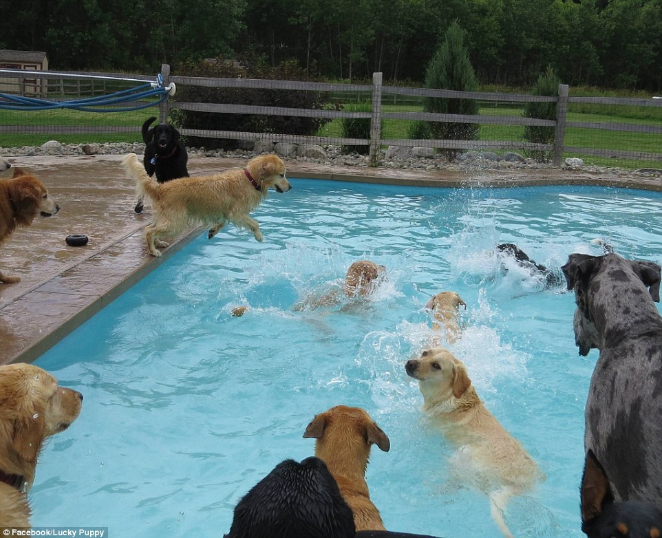 Lucky Puppy, psia škôlka v Michigane, poskytuje služby pre tú najnáročnejšiu klientelu. Bazénová party je súčasťou pobytu v luxusnej škôlke, kde sa psíkovia hrajú a plávajú v bazéne, ktorý má tvar kosti, pričom vyzerajú naozaj šťastne.