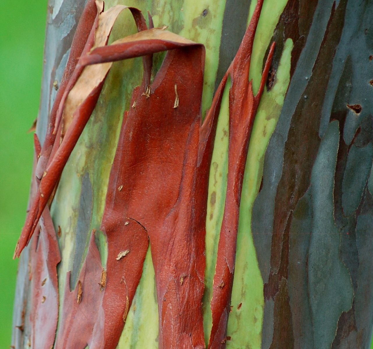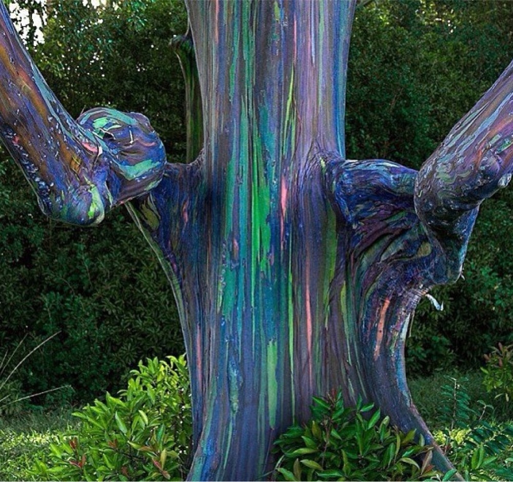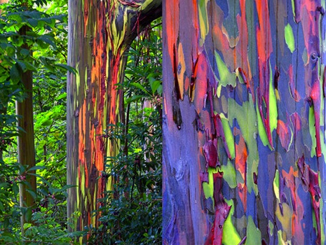Krásne farebné stromy sa nazývajú eucalyptus deglupata alebo aj dúhový eukalyptus. A je to jediný druh eukalyptov, ktorý rastie aj na severnej pologuli. Vyskytuje sa najmä na Novej Guinei, na indonézskych ostrovoch Ceram a Sulawesi a tiež na filipínskom ostrove Mindanao.