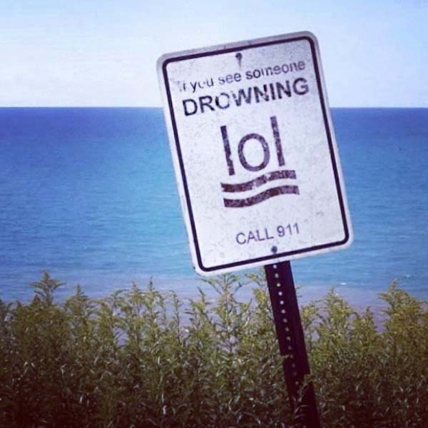 Keď uvidíte niekoho topiť sa ... LOL...a potom volajte 911. Alebo LOL znázorňuje topiaceho panáčika?