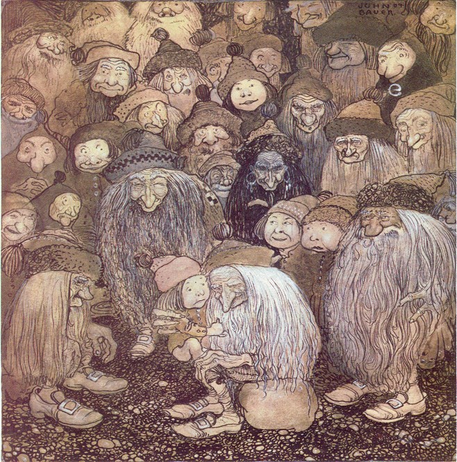 Tak ako trpaslíci, aj trollovia pochádzajú práve z mytológie Vikingov. Tí ich opisovali ako stvorenia podobné ľuďom, ktoré žili v skupinách v jaskyniach a horách a málokedy im pomáhali. V neskoršom škandinávskom folklóre sú dokonca opisovaní ako potencionálne nebezpeční. Trollovia sa často spájajú s mnohými miestami v Škandinávii – ľudia si ich s nimi spájali, pretože mali ich podobu (trollovia sa na slnku podľa tradície premenia na kameň).