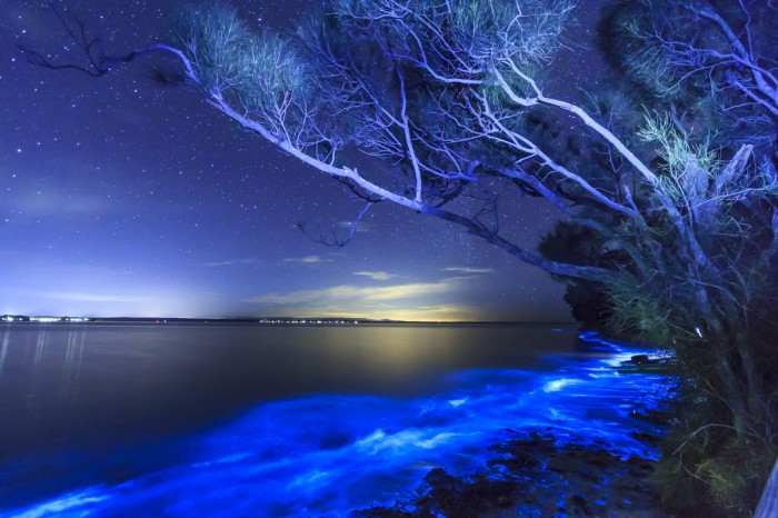 The Jervis Bay, New South Wales, Austrália - pláže v tejto oblasti sú nanajvýš ohromujúce v noci - planktón sa totiž v dôsledku chemických reakcií stal luminiscenčným, preto tieto morské tvory vyžarujú oslňujúco modrú žiaru. Okrem vzácneho prírodného javu je Jervis Bay je obľúbenou turistickou atrakciou, ktorá poskytuje rôzne zábavné vodné športy.