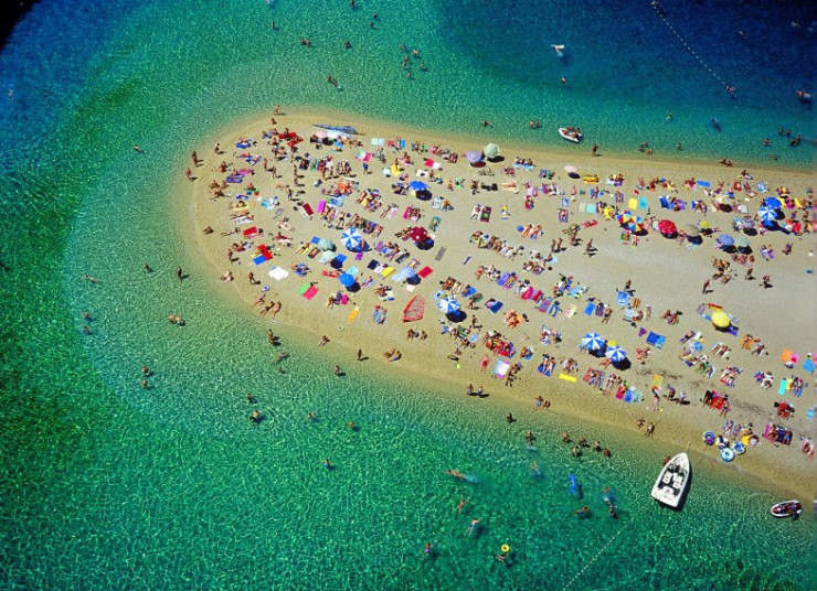 Golden Horn (Zlatni Rat), Brač, Chorvátsko - pláž vyčnieva 530 metrov do krištáľovo čistého Jadranského mora a svojou jedinečnou polohou láka ročne tisícky turistov a rekreantov z celého sveta, ktorí milujú slnko, teplé more a vodné športy. Ostrov je tiež známy windsurfingom, množstvom atrakcií a čistou vodou.