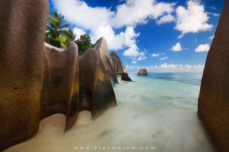 Anse Source d’Argent, La Digue Island, Seychely - kultová pláž, ktorá vyzerá ako v pohľadnice, je dokonalou ukážkou Seychelských ostrovov. Po opaľovaní na jednom bielom piesku si môžete vychutnať teplý Indický oceán a následne obdiovať obrovské žulové balvany roztrúsené po okolí, ktoré tvoria jedinečné zátoky a jaskyne.