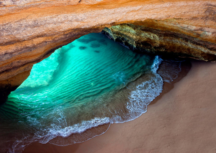 Algarve, Portugalsko - nápadné pobrežie sa nachádza v najjužnejšom regióne krajiny a je mimoriadne bohaté na nádherné vápencové jaskyne a zátoky. Dramatické pobrežie a pieskovcové piliere rastúce priamo z vody môžete objavovať počas romantickej prechádzky po horúcom piesku či plavby loďou.