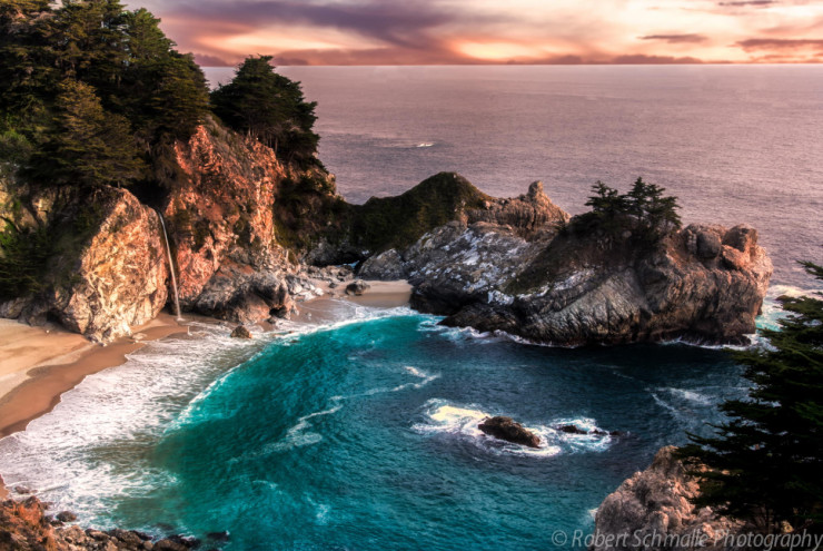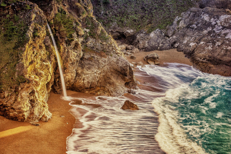 Julia Pfeiffer Burns State Park, Big Sur, Kalifornia, USA - toto výnimočné miesto je známe pre McWayove vodopády valiace sa zo strmého útesu a ponárajúce sa priamo do hlbín oceánu. Zátoka je naozaj nádherná, no pre bežných turistov pomerne ťažko prístupná. Obdivovať ju však môžete aj z diaľky počas plavby loďou.