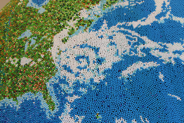 Na prvý pohľad to môže vyzerať len ako obyčajný obrí glóbus, no pri pohľade z bližšia uvidíte, že je vyrobený z niečoho netypického. Uhádli ste, čo to je?