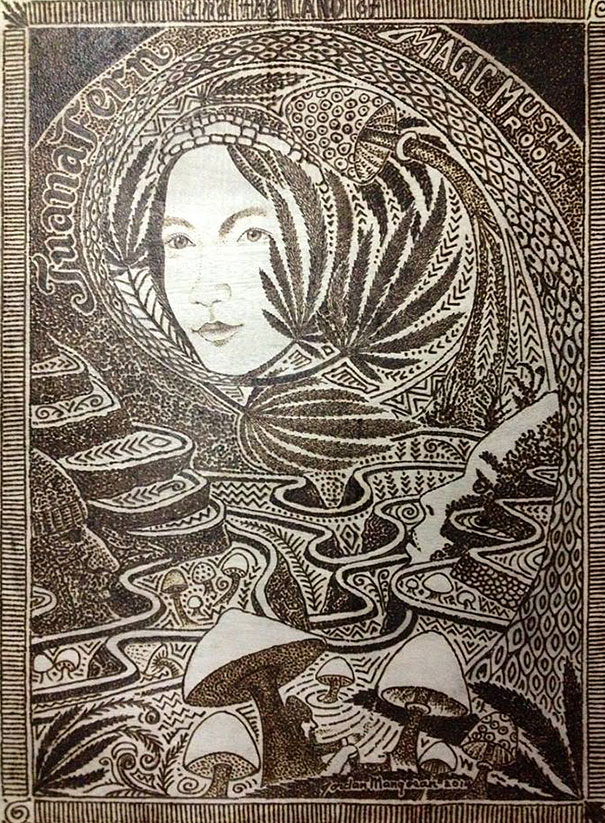 Filipínec na tvorbu umeleckých diel potrebuje iba drevenú platňu, lupu, slnko a enormnú dávku trpezlivosti.