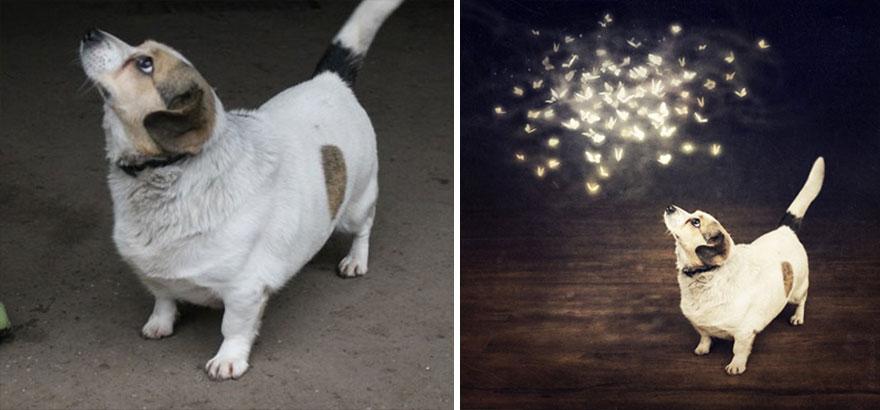 Sarolta je uznávaná fotografka špecializujúca sa na surrealistické fotografie, ktoré niekedy dajú poriadne zabrať vašej mysli ale súčasne obmäkčia vaše srdce. Jej séria psích portrétov začala vtedy, keď si ona sama osvojila psíka a následne mu vytvorila takýto zaujímavý portrét. Vďaka kreatívnemu spracovaniu úplne bežných fotografií dáva opusteným psíkom nádej, že si raz nájdu nový milujúci domov.