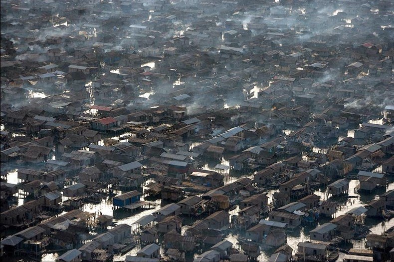Na okraji Atlantického oceána v nigérijskom meste Lagos sa nachádza obrovský slum s názvom Makoko. Zaujímavosťou týchto chatrčí je to, že sú postavené na vode.