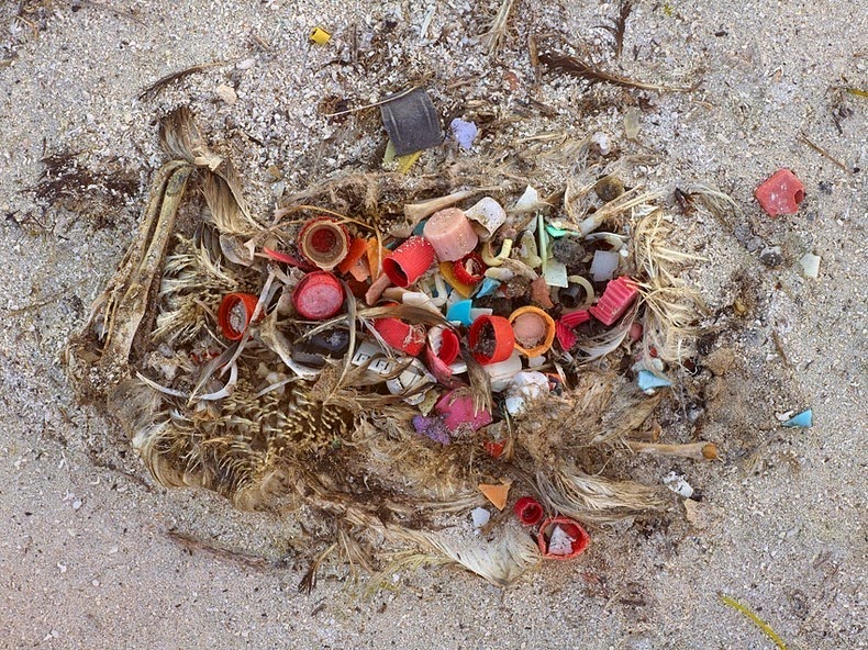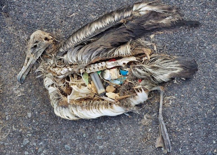 Po dobu troch rokov, fotograf zo Seatlu a malá skupinka kameramanov, natáčali albatrosy žijúce na ostrove Midway Atoll v Pacifiku, viac ako 2 400 míľ od Aljašky. Vtáky, ktoré sa bežne živia chobotnicami a ďalšími zvieratami plávajúcimi pod povrchom vody, namiesto svojej potravy prehltli kúsky plávajúceho plastu. Ten si totiž často zamieňajú s jedlom. Následne sa vtáky vracajú na ostrov, kde týmto plastom kŕmia svoje mláďatá. Na tomto mieste sa ročne narodí asi 500 000 albatrosích mláďat, no približne 200 000 z nich umrie v dôsledku dehydratácie či hladovania. Plasty, ktoré mláďatá zjedia v mnohých prípadoch porania alebo prepichnú ich žalúdok a vytvárajú zranenia, ktoré ohrozujú ich životy a väčšinou končia smrťou. Inokedy zomrú na udusenie, dehydratáciu či hladovanie, pretože plast zanecháva v žalúdku veľmi malý priestor na vodu a jedlo.