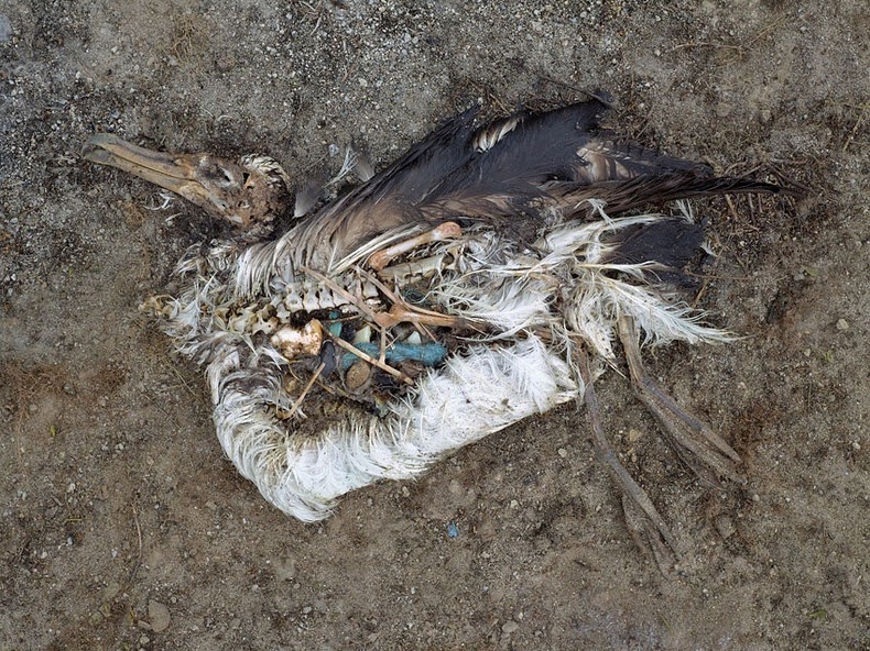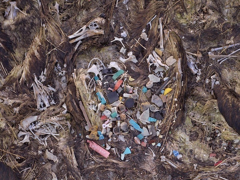 Fotograf Chris Jordan, ktorý sa špecializuje na rozsiahle fotografické série, zobrazuje veľkosť nášho konzumu a jeho vplyvu na životné prostredie. Prináša nám tieto srdcervúce obrazy vtákov zabitých zjedením plastov, ktoré stále viac a viac znečisťujú naše oceány.