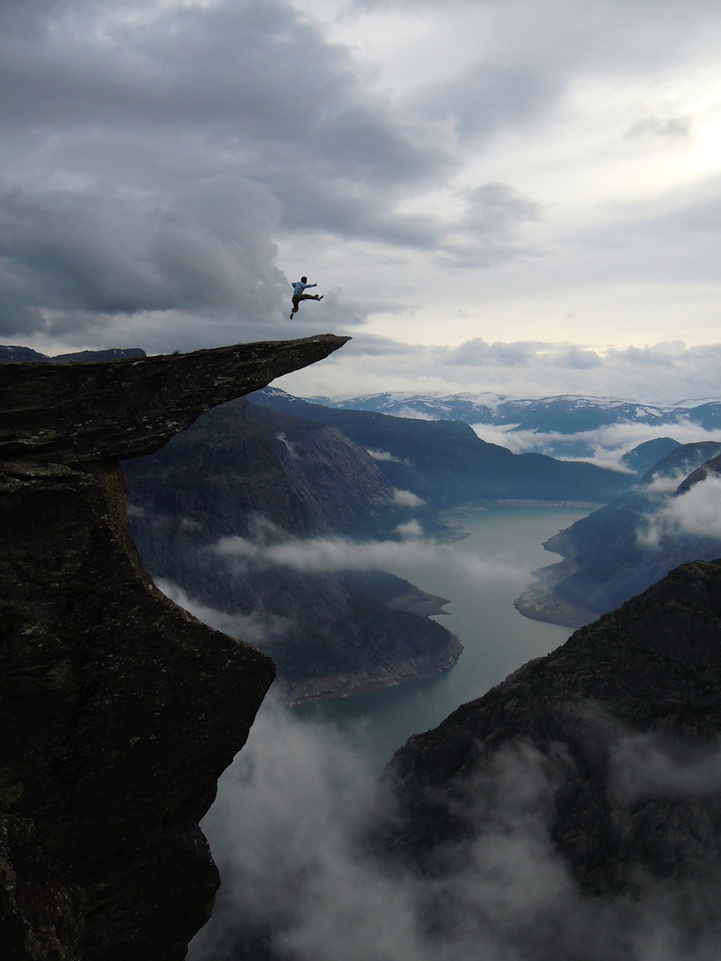 Dôkazom je aj tento skamenelý "Jazyk obra", alebo "Trolltunga" v Nórsku. "Trolltunga" je neobvyklá skala, ktorá sa nachádza vysoko v nórskych horách. Pomenovanie získala vďaka svojmu tvaru a legendy, ktorá sa s ňou spája. Keď sa na túto skalu dostanete, máte pocit, že stojíte na vrchole sveta, pretože sa vám naskytne dychberúci výhľad na šíre okolie.