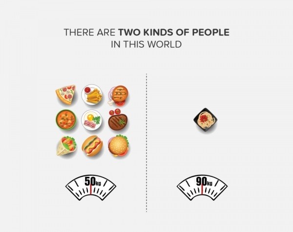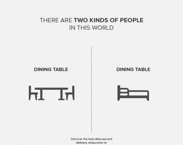Veľmi trefne to vystihli výtvarníci na Zomato, ktorí ukázali, že v skutočnosti sú na svete len dva typy ľudí. Buď chováte doma mačku, alebo psa. Buď pijete kávu, alebo čaj. Vo fastfoode si dáte hamburger, alebo cheeseburger. Vidíte aké je to jednoduché? Tak aký typ človeka ste vy?