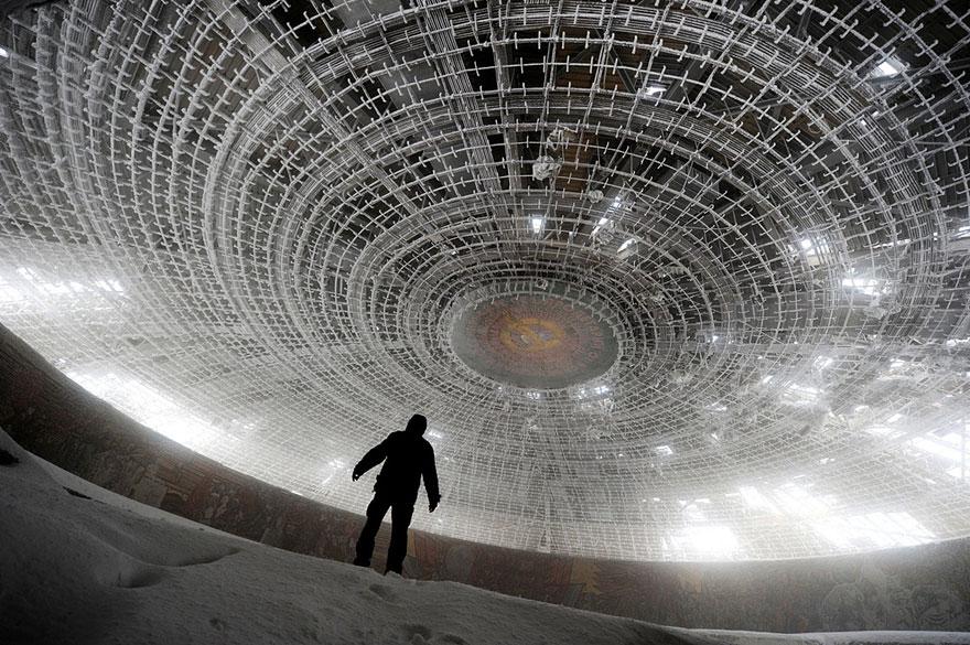 Dom bulharskej komunistickej strany, Bulharsko - bývalé sídlo bulharskej komunistickej strany je rovnako desivé z vnútra aj z vonku. Budova, ktorá pripomína lietajúci nanier, bola používaná v rokoch 1981 - 1991 a začala sa rozpadať spolu so Sovietskym zväzom. Toto mesto duchov sa však plánuje obnoviť.