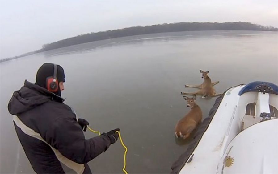 Jedného dňa chlapík menom James uvidel na facebooku príspevok o tom, že uprostred zamrznutého jazera Albert Lea v štáte Minnesota uviazli dva jelene. Vysilené sa nevedeli postaviť na nohy a dostať do bezpečia.