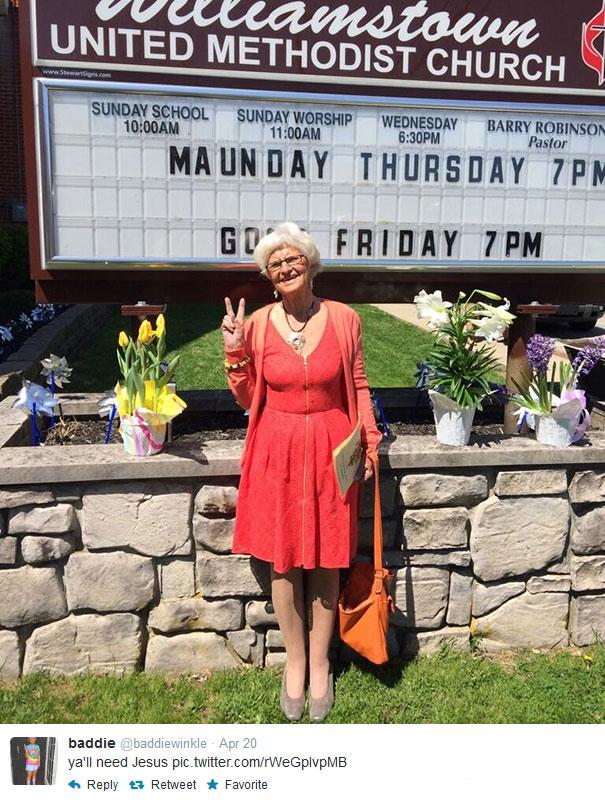 Takmer každý deň zdieľa obrázky so svojimi nasledovníkmi na sociálnych sieťach, ktorých má ich viac než dosť - na Twitteri je ich viac ako 200 000 a na Instagrame viac ako 30 000. Pokiaľ by ste takéto správanie videli na 16 ročnom puberťákovi, poviete si, že sa v ňom búria hormóny a je šťastný z toho, že práve objavil nové gesto, ktoré používa na každej fotke, alebo že jednoducho využíva technológie tak trošku v zvýšenej miere. Pokiaľ má však tento teenager 86 rokov, môže sa to zdať, pri najmenšom, veľmi vtipné. Čerešničkou na torte je Baddiene tvrdenie, že je „na ceste ukradnúť vám vášho muža“. Dávajte si preto pozor, aby odolal čaru tejto dámy, ktorá minimálne svojim srdcom ostane „Forever young“.
