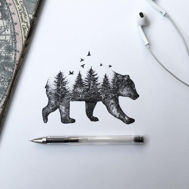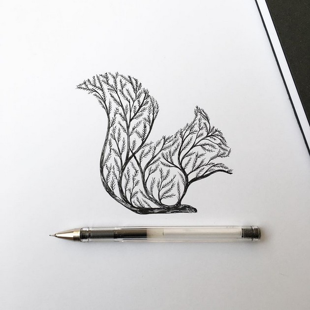 Veverička, medveď či iné lesné tvory má na svedomí umelec, ktorý využíva nástroj každého školáka - obyčajné pero.